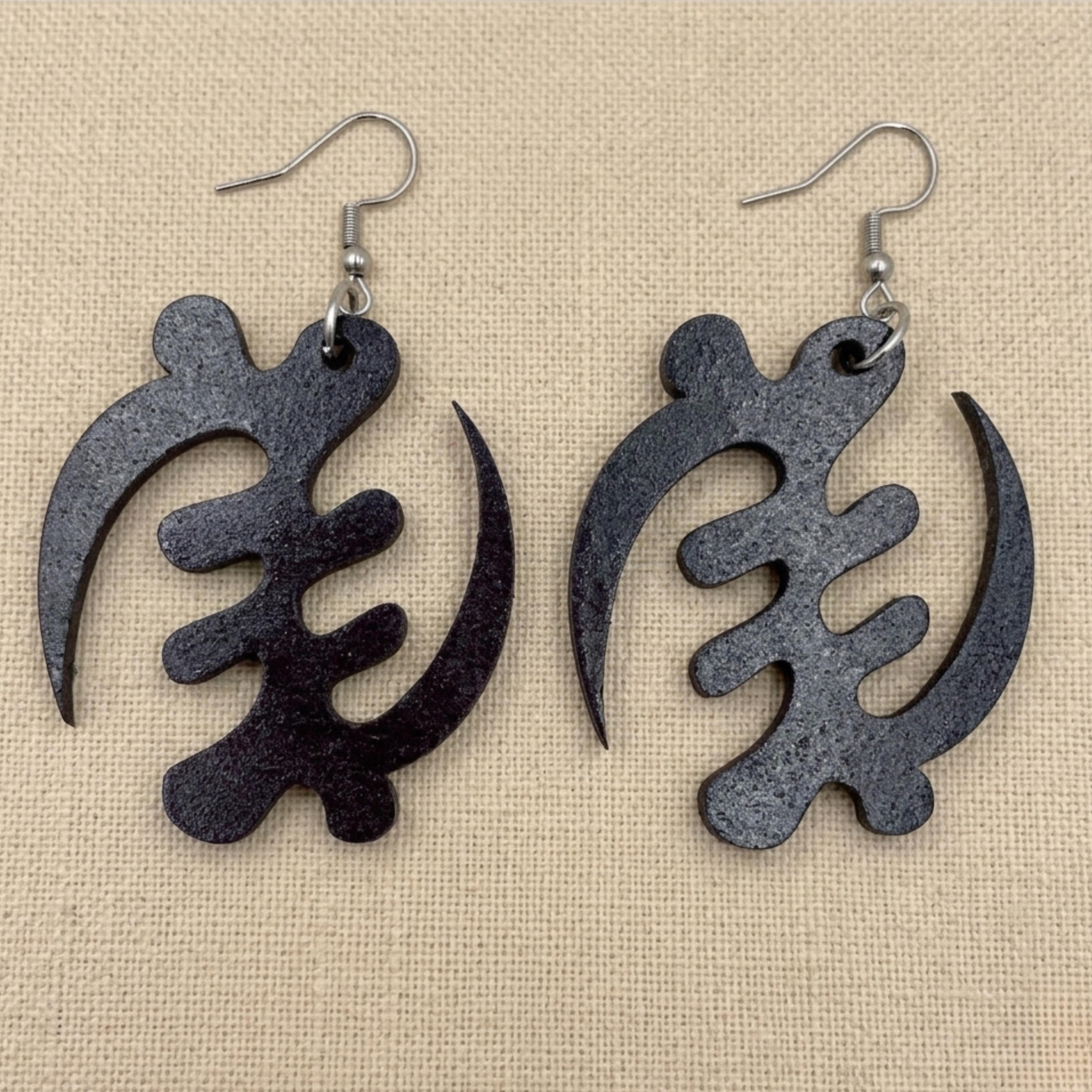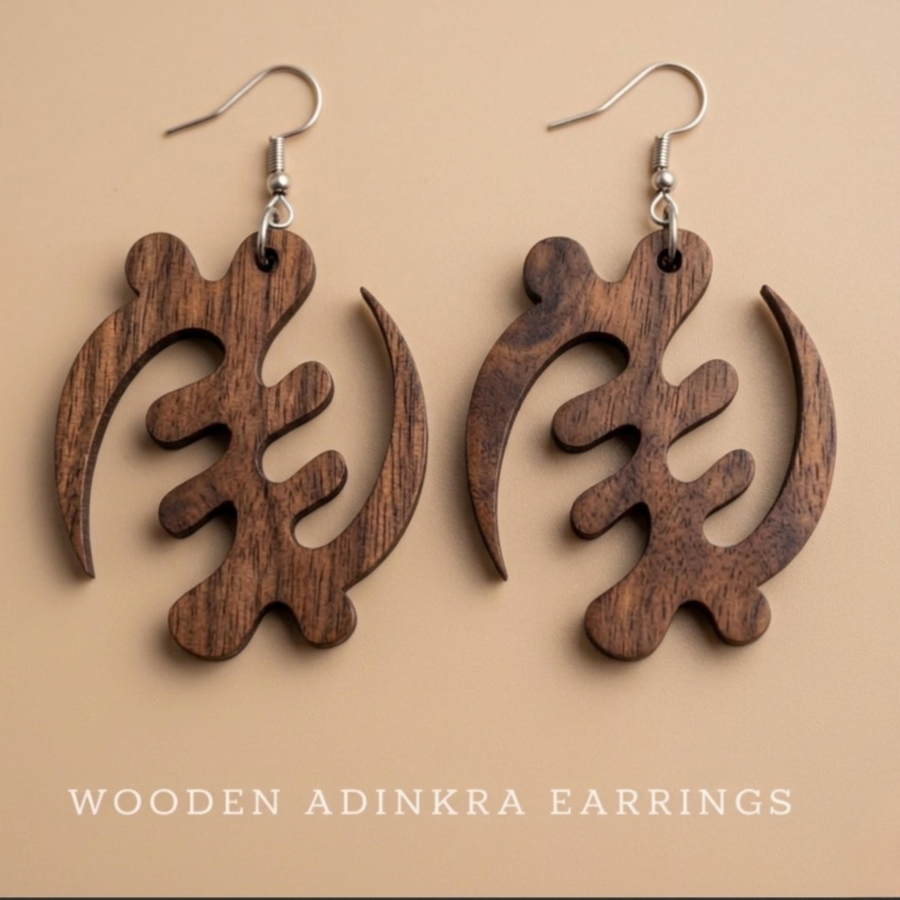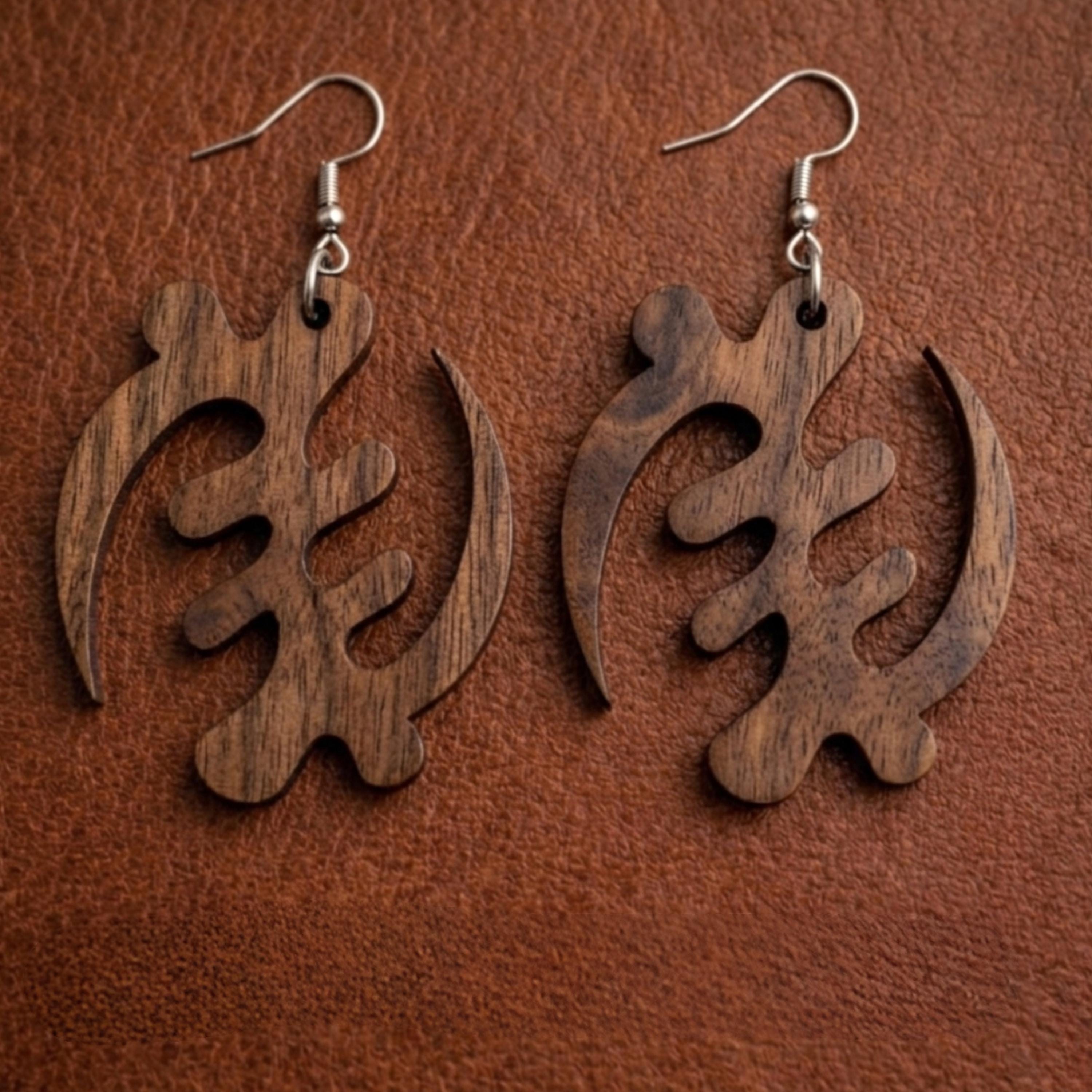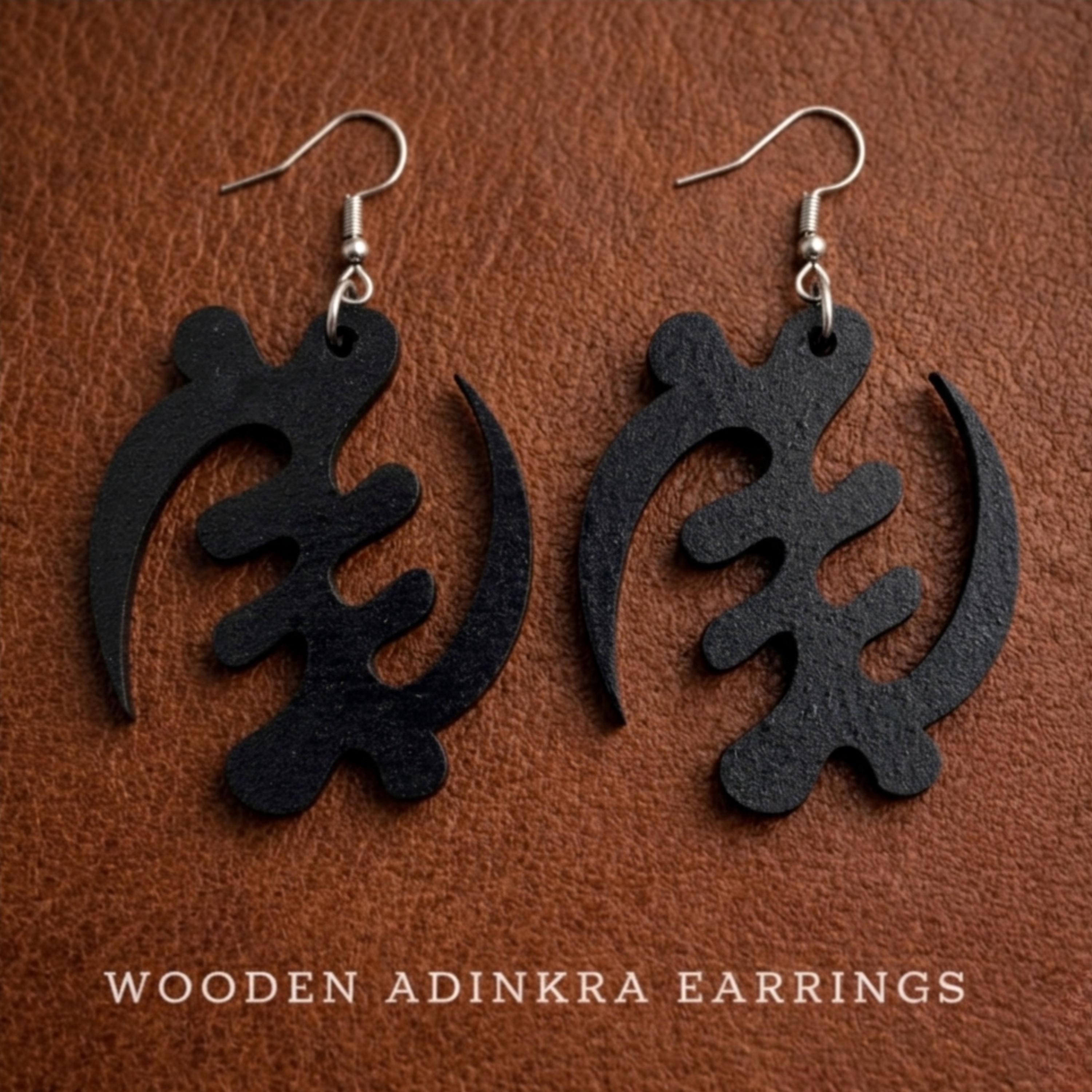 Worn across generations, Gye Nyame affirms a powerful truth: nothing stands above the Creator. It is a symbol of strength rooted in belief and the assurance that one moves through life under divine authority. These wooden earrings carry that meaning with quiet boldness. The design is refined and intentional; deeply symbolic without excess.