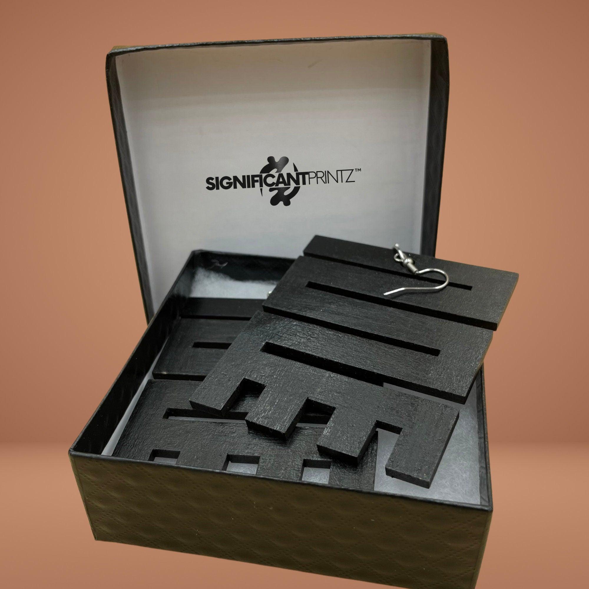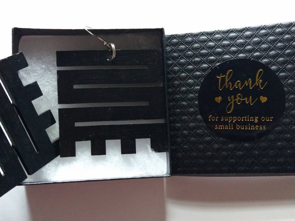 Your purchase includes a pair of laser-cut painted wood earrings: