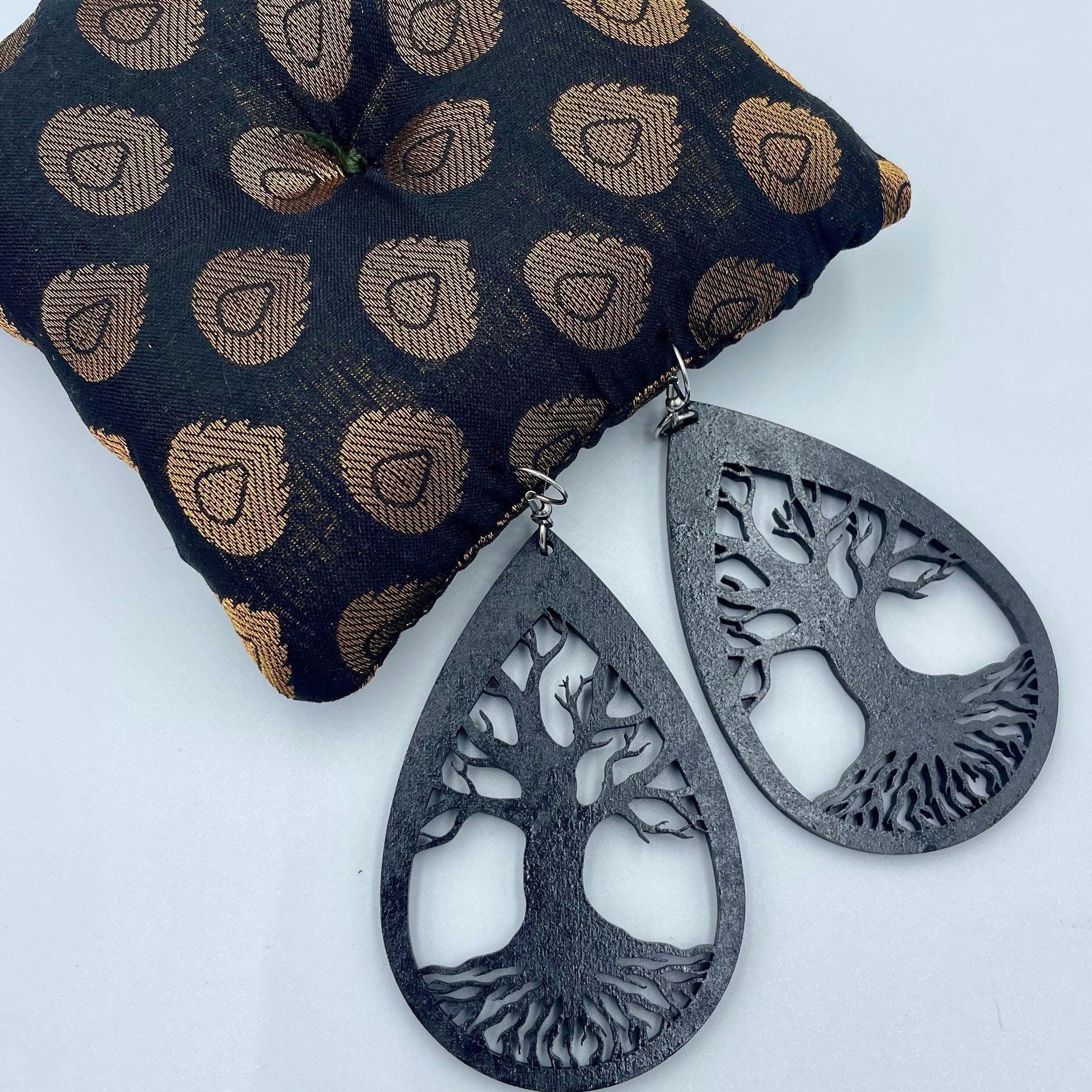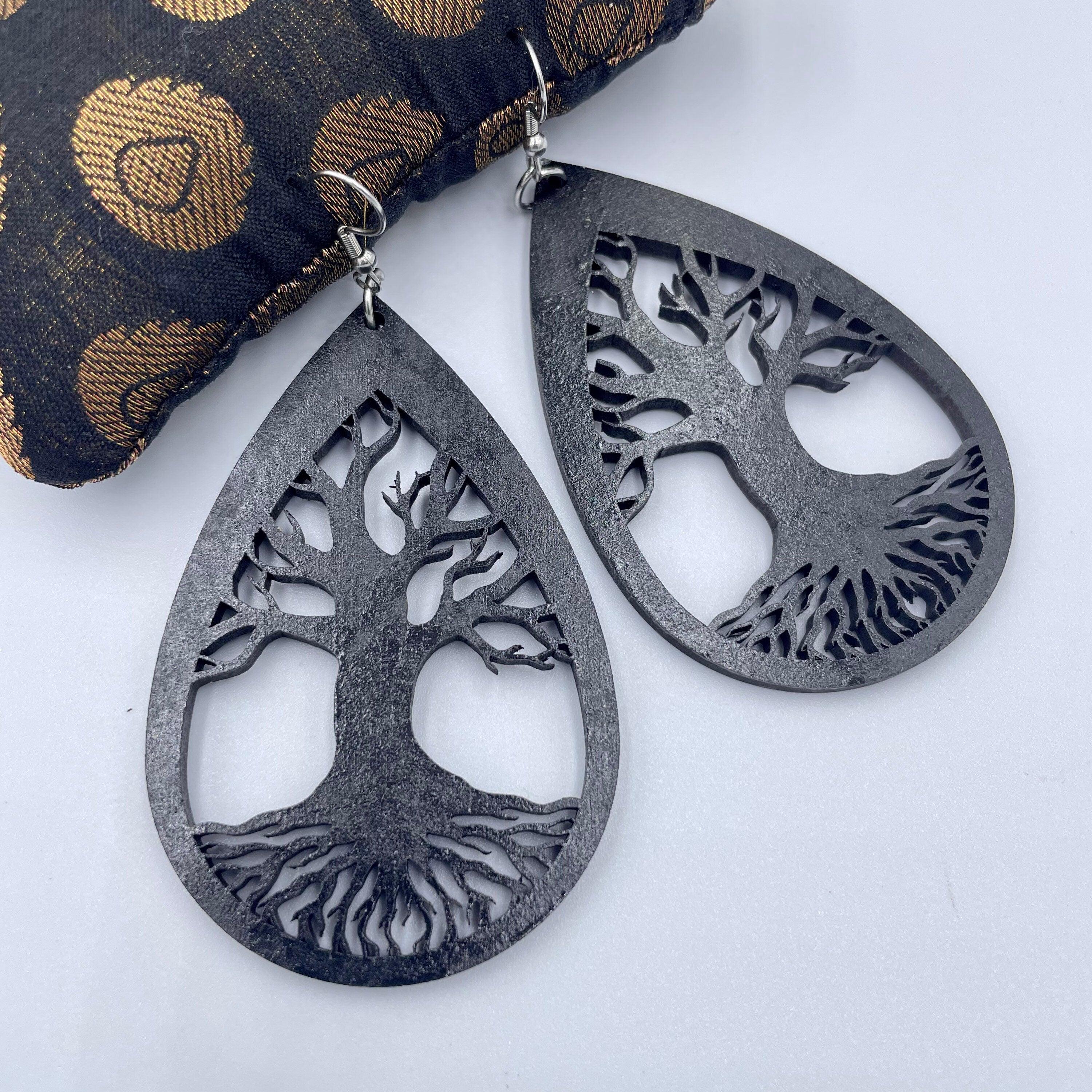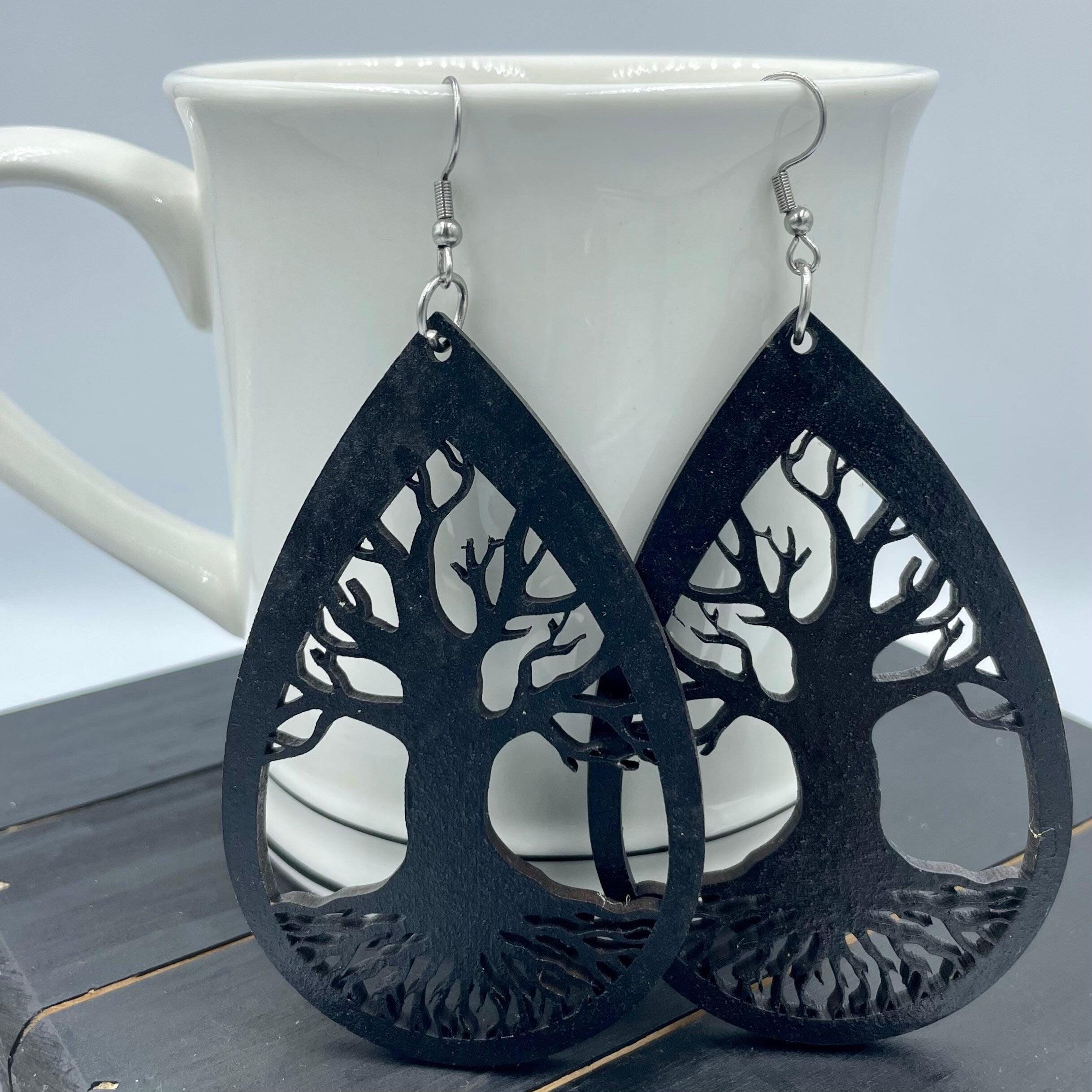 Tree Of Life Drop Wooden Earrings