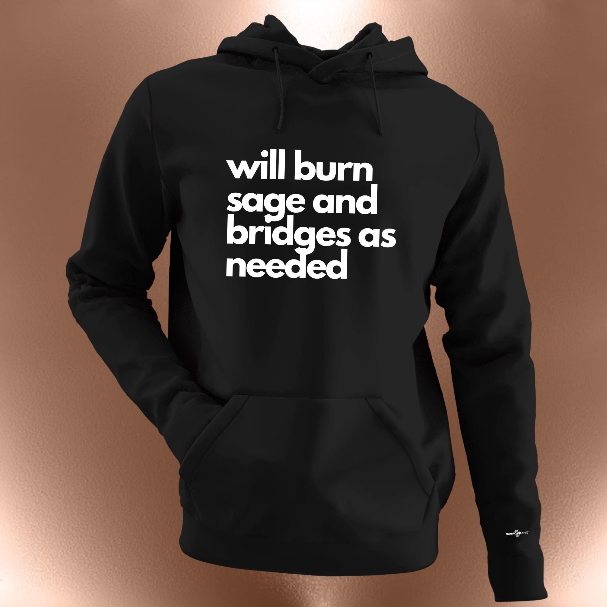 The "Will Burn Sage & Bridges As Needed" sweatshirt or hoodie is for those who believe in energy cleansing and cutting ties when necessary. Whether you’re smudging negativity away or walking away from what no longer serves you, this cozy hoodie has your back (literally).
