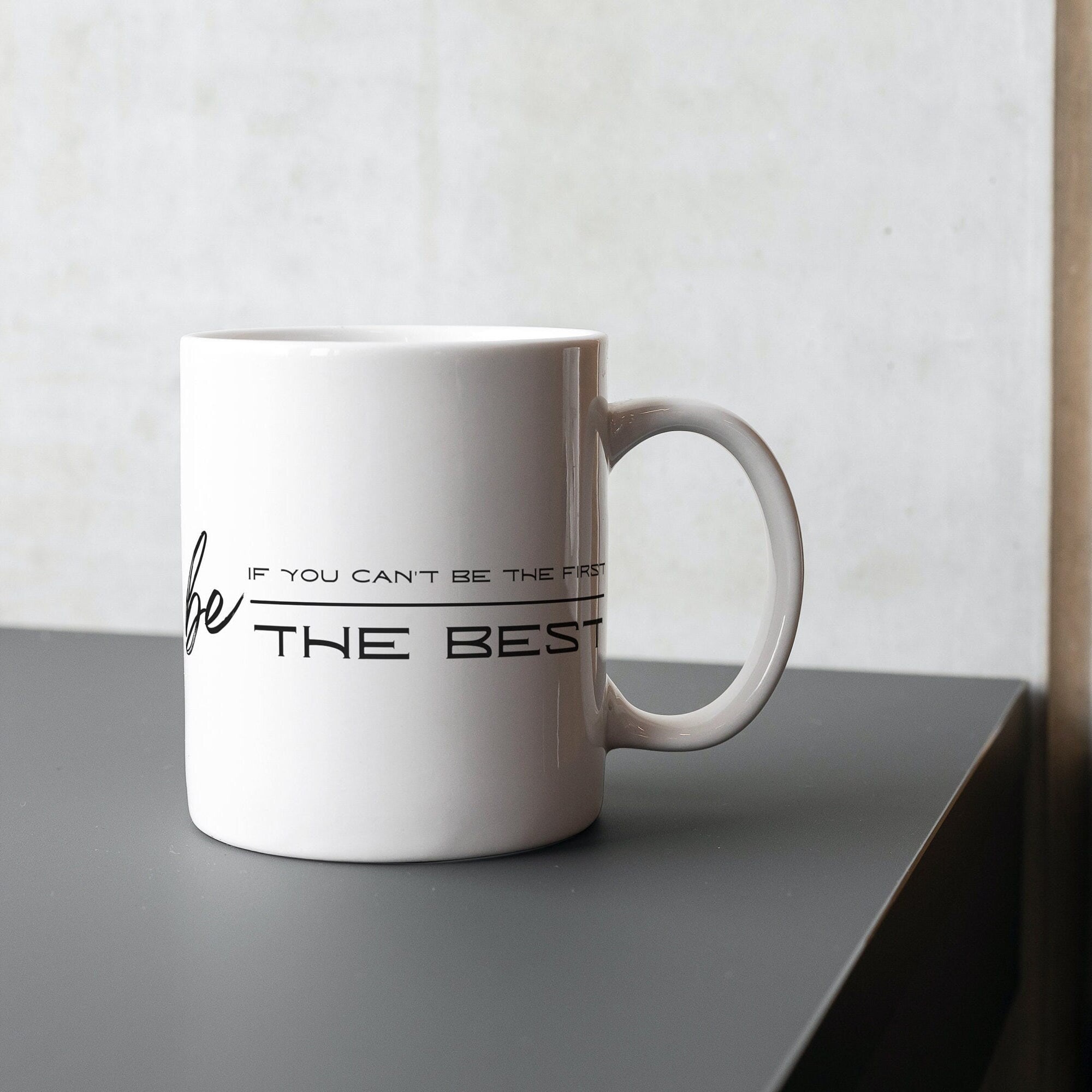 Fuel your ambition with our “If You Can’t Be the First, Be the Best” mug, a bold reminder that excellence is within your reach, no matter the order. This 11oz. ceramic mug is designed to inspire greatness and encourage you to strive for the top, even if you’re not the first to get there. Whether you’re enjoying your morning coffee, tea, or any favorite drink, this mug serves as a daily affirmation to push beyond limits and excel in everything you do. Perfect for those who are determined to leave their mark, this mug is your daily dose of motivation to be the best.