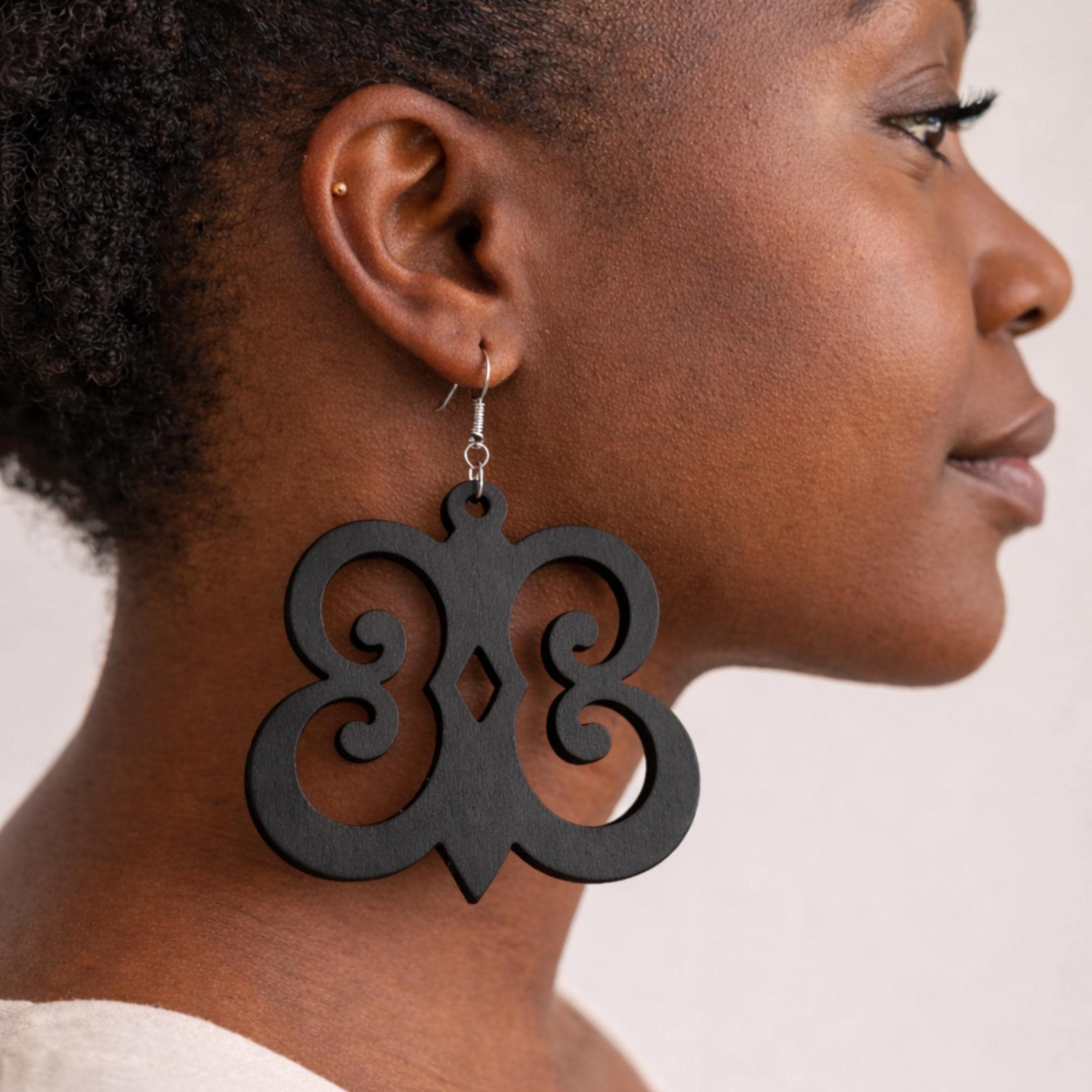 Crafted from lightweight wood, these earrings are bold yet wearable, making a statement without excess. Their meaning runs deep, but their design remains clean and intentional, allowing the symbolism to speak for itself.