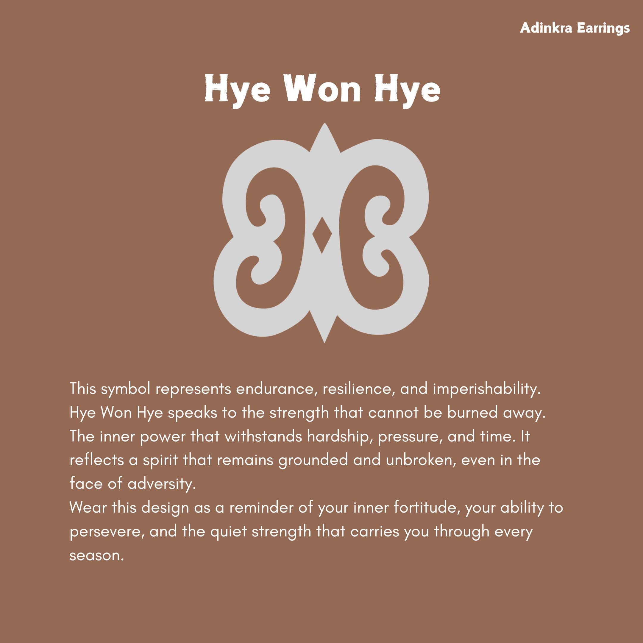 These Adinkra earrings honor the truth that some things survive every test. Worn as a reminder of inner resolve, Hye Won Hye speaks to those who have been tried, refined, and still stand.