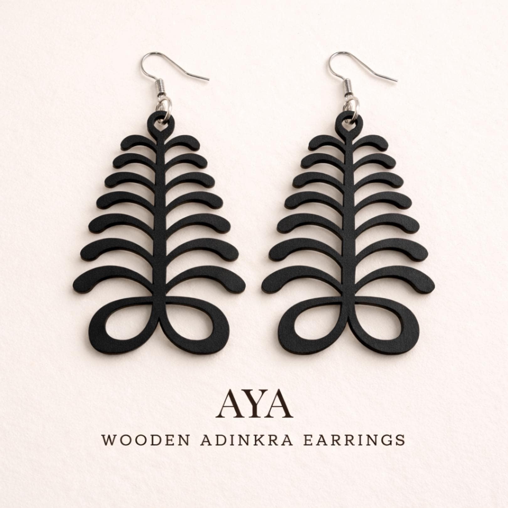 These Adinkra earrings honor quiet perseverance and inner fortitude. Aya speaks to those who have weathered storms, adapted, and continued forward with grace and determination.