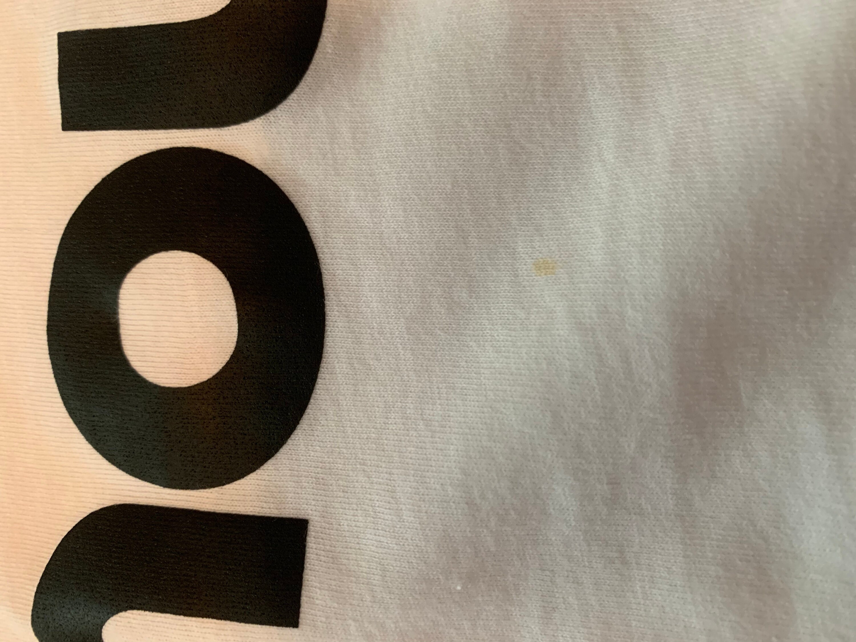 Thought that the material of the shirt would be a little thicker material. There was also a small stain on the shirt (orangish color) right under the wording.